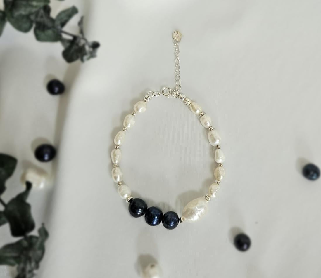 - Doğal mavi, gri ve beyaz renklerdeki tatlı su incisi ile tasarlanmış bu bileklik, her kıyafetle uyum sağlayacak şık bir aksesuar sunar.