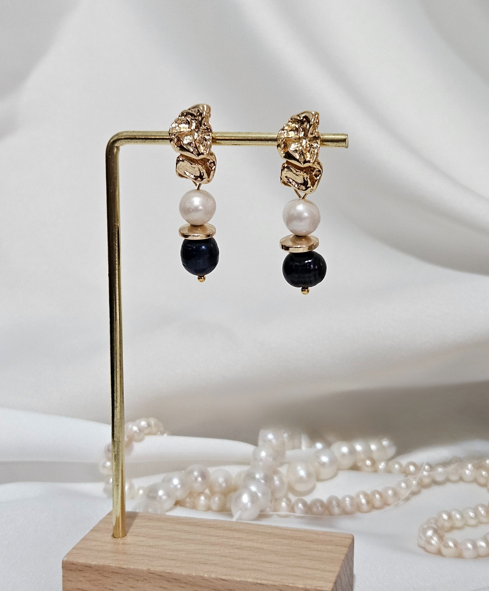Mavi-Gri Beyaz İncili Küpe 18k Altın Kaplama