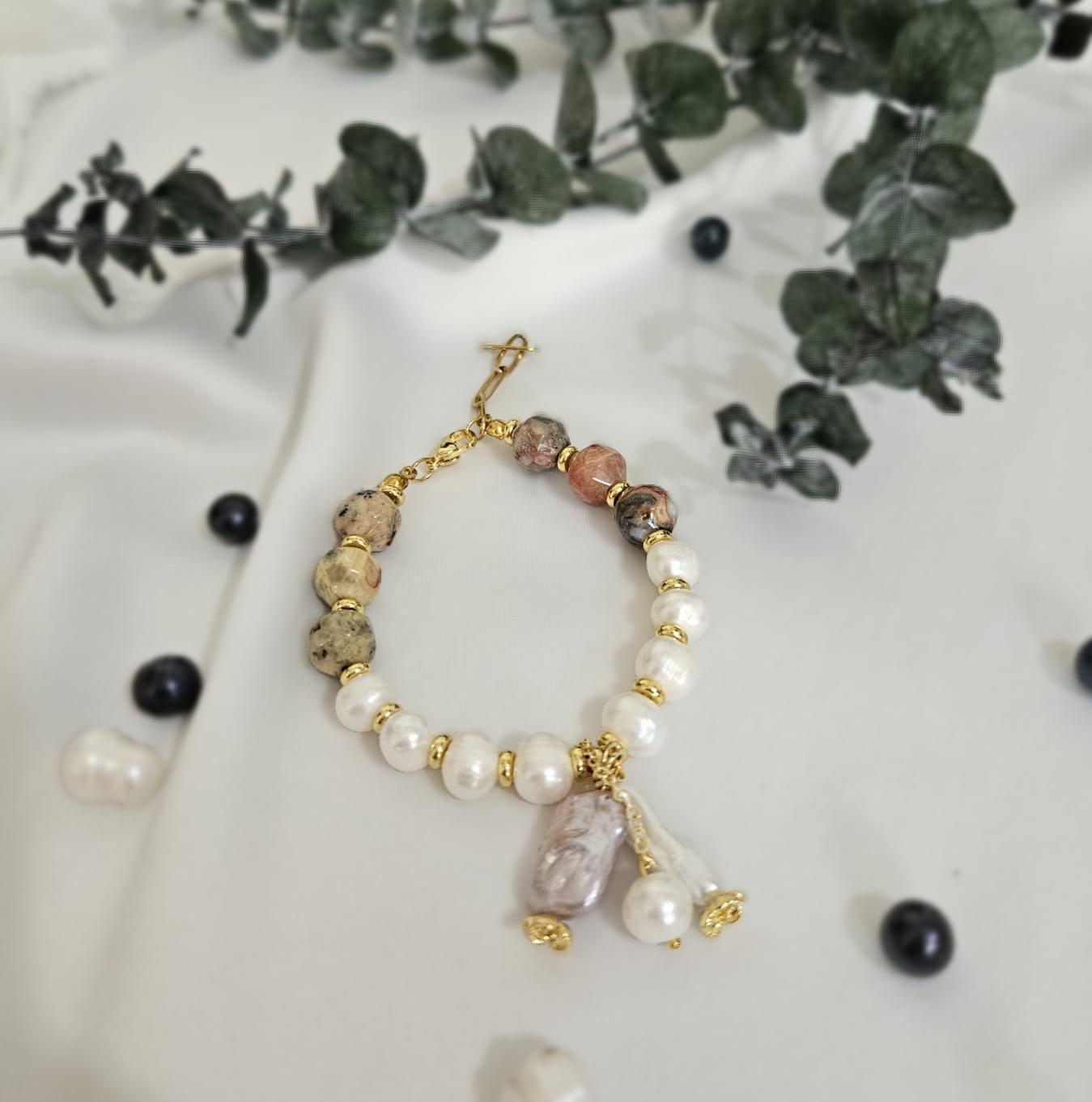 Ürün gerçek Doğal inci ve Oniks taşı ile ve Altın kaplama materyaller ile hazırlanmıştır.; Ürün, tamamen doğal taşlardan üretilmiştir.; Bu nedenle her taşın renk tonu ve deseninde küçük farklılıklar olabilir.; Ürün, görsellerdeki ile birebir aynı tasarımı taşımakla birlikte doğal taş yapısından kaynaklı minimal farklılıklar doğaldır.; Bileklikler papağan klipsli olup uzatma zinciri mevcuttur; Doğru kullanım ve bakım koşullarına uyulduğu sürece uzun ömürlüdür.